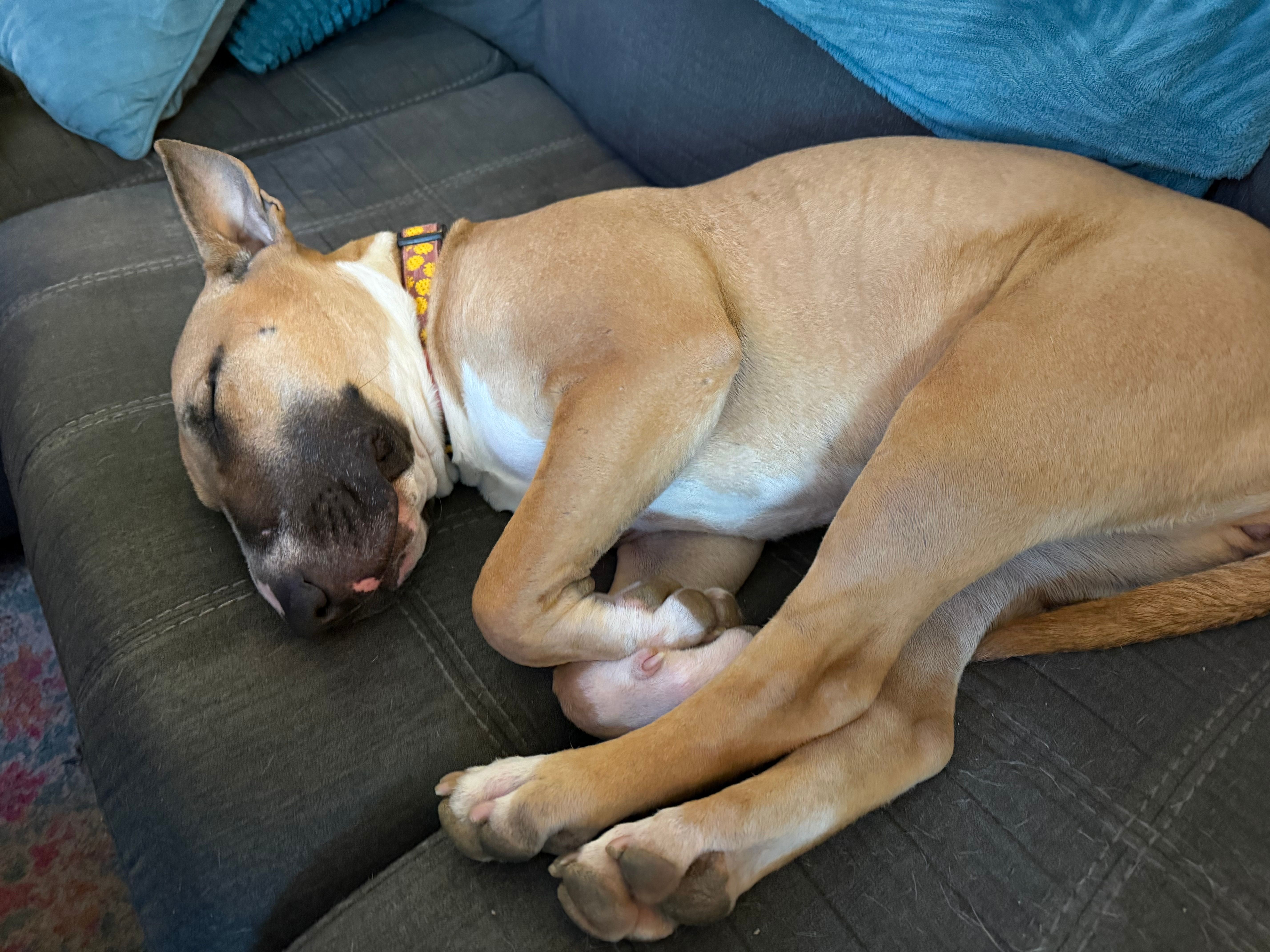 I am made entirely of muscle. My parents joke that I do push-ups in my crate all night while they’re sleeping.